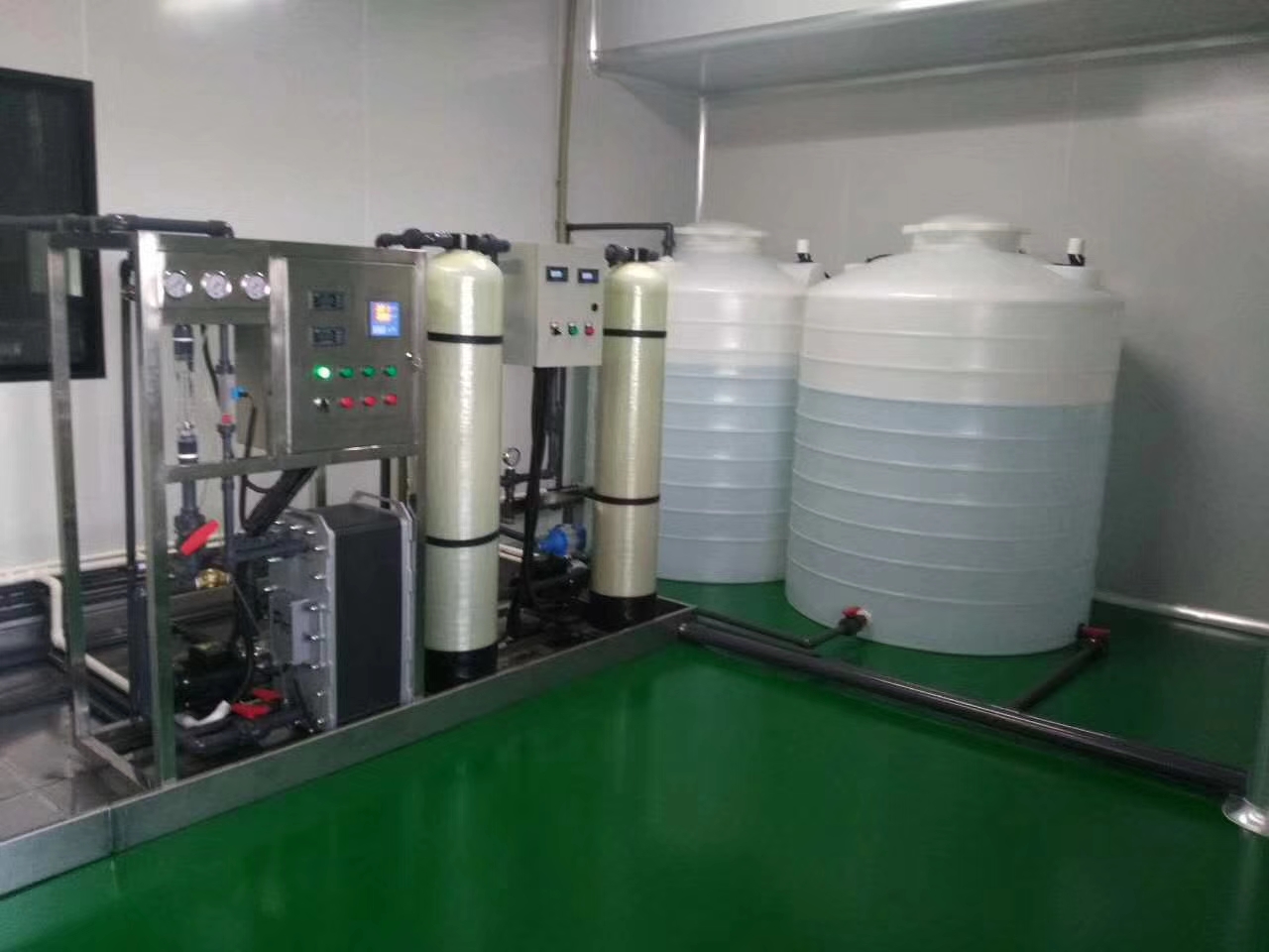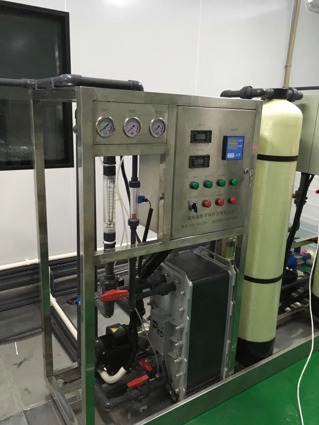 株洲立方新能源2T/H雙級反滲透+EDI超純水安裝調試完畢,潔凈車間和鑫泰環保的設備完美搭配一起。